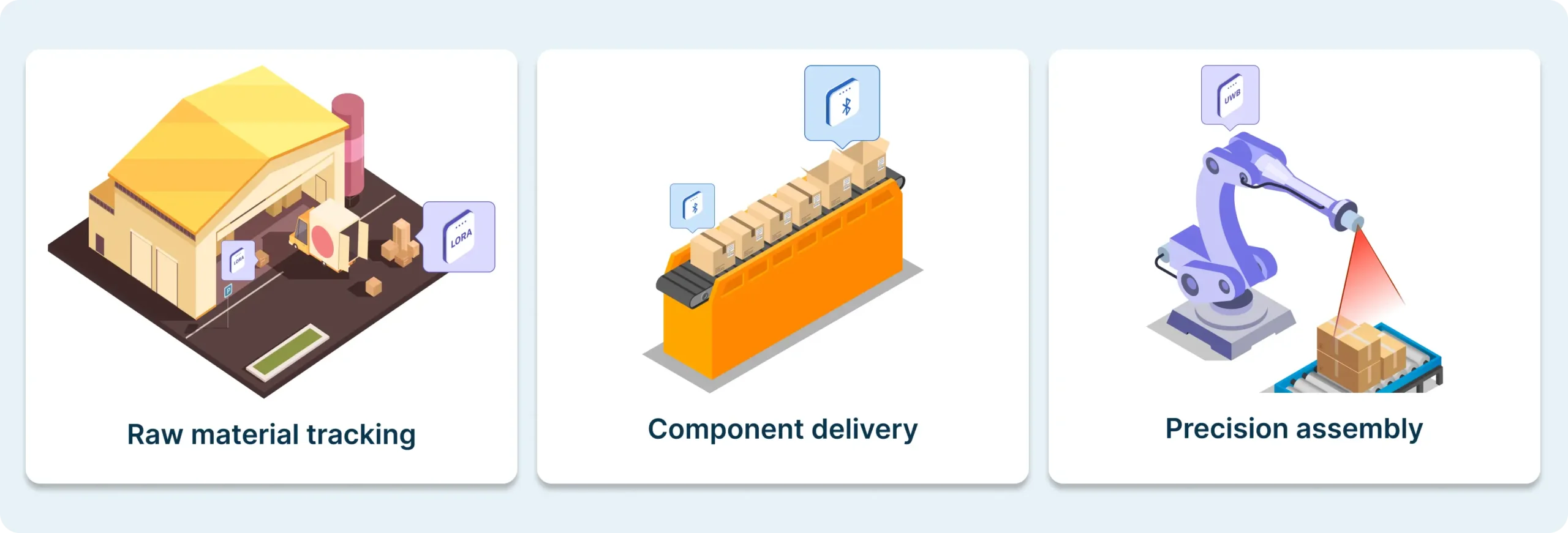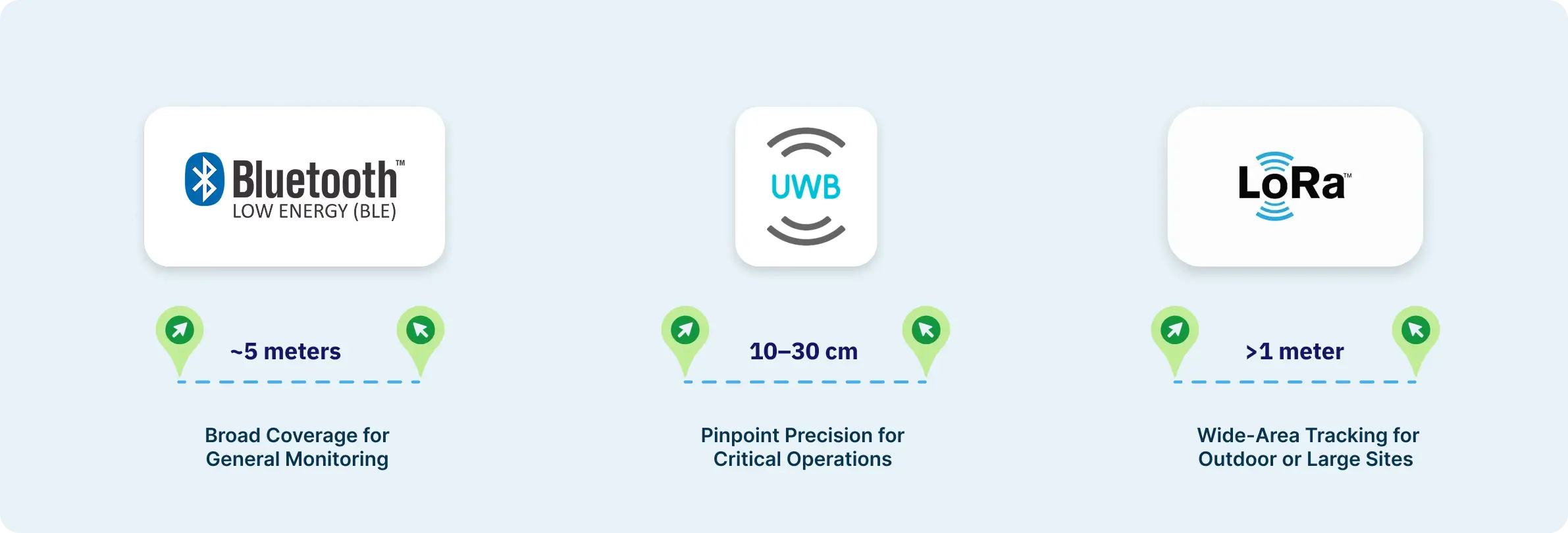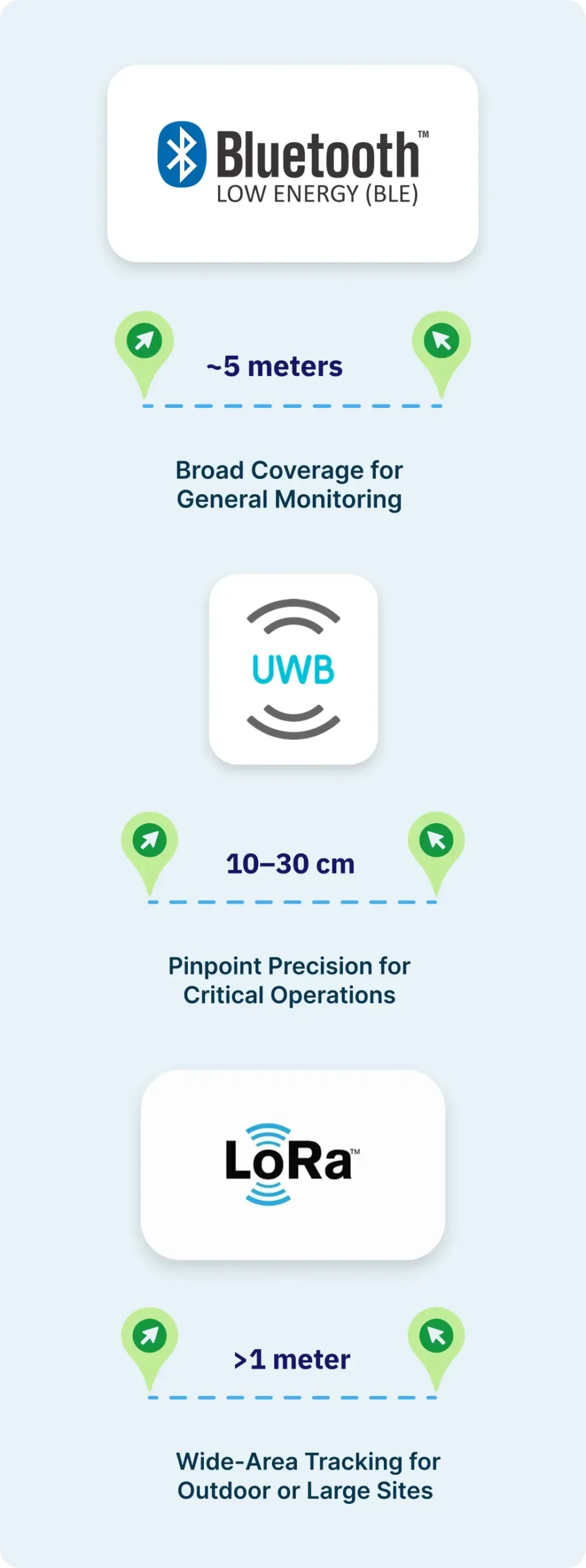 By combining these technologies into a layered RTLS tracking ecosystem, SyTrak delivers indoor and outdoor asset visibility — from precision assembly to outdoor logistics — ensuring the right accuracy, in the right place, at the right time.