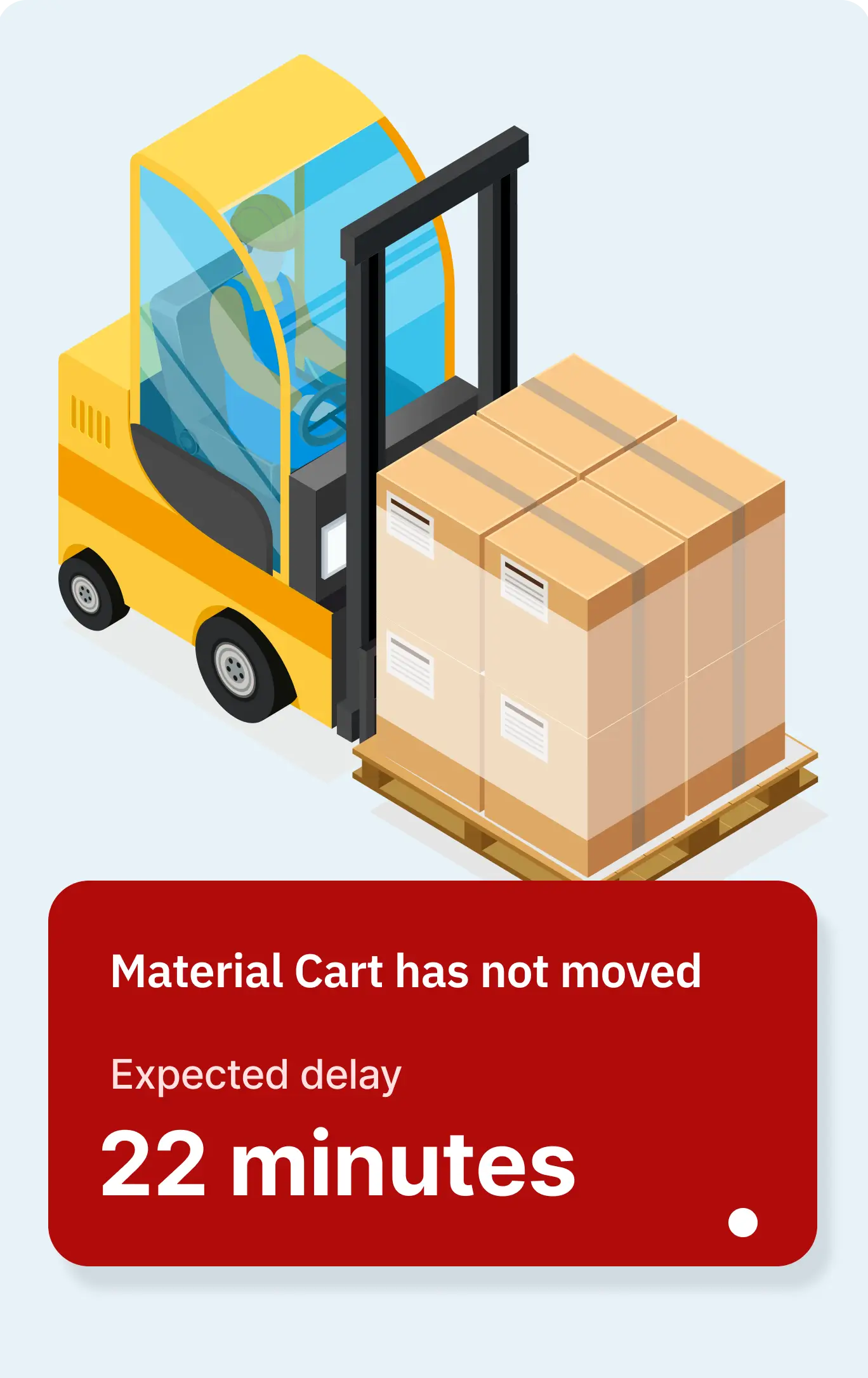 • “Material Cart has not moved. Expected delay: 22 minutes.”Instead of reacting to delays, SyTrak prevents them.