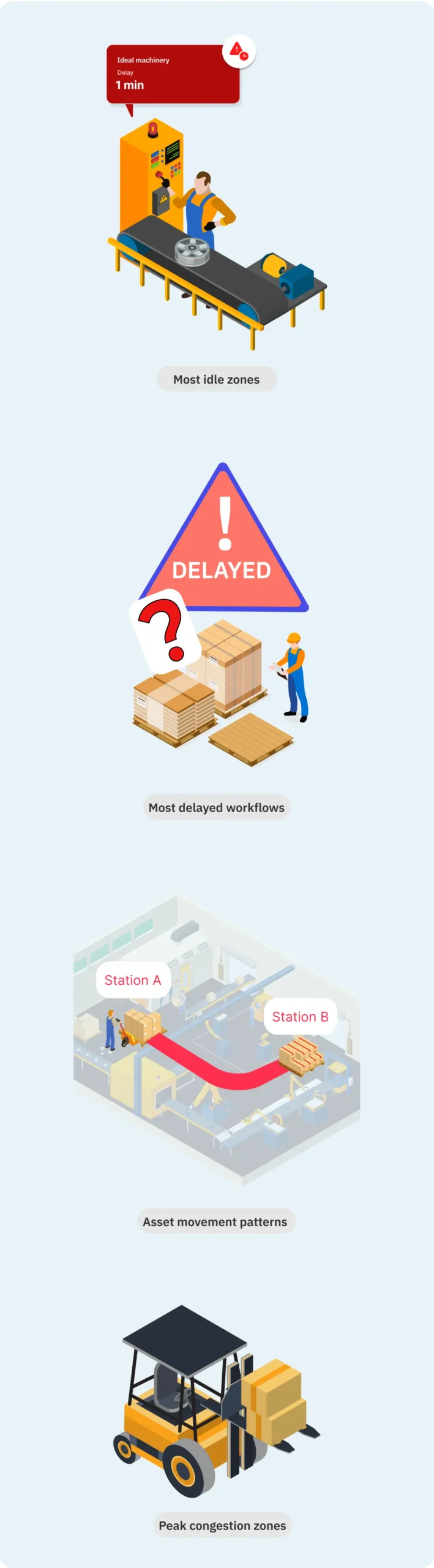 • “Forklift #6 idle for 35 minutes in Zone D.”